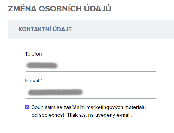 2. Zaškrtněte políčko Souhlasím se zasíláním marketingových materiálů.