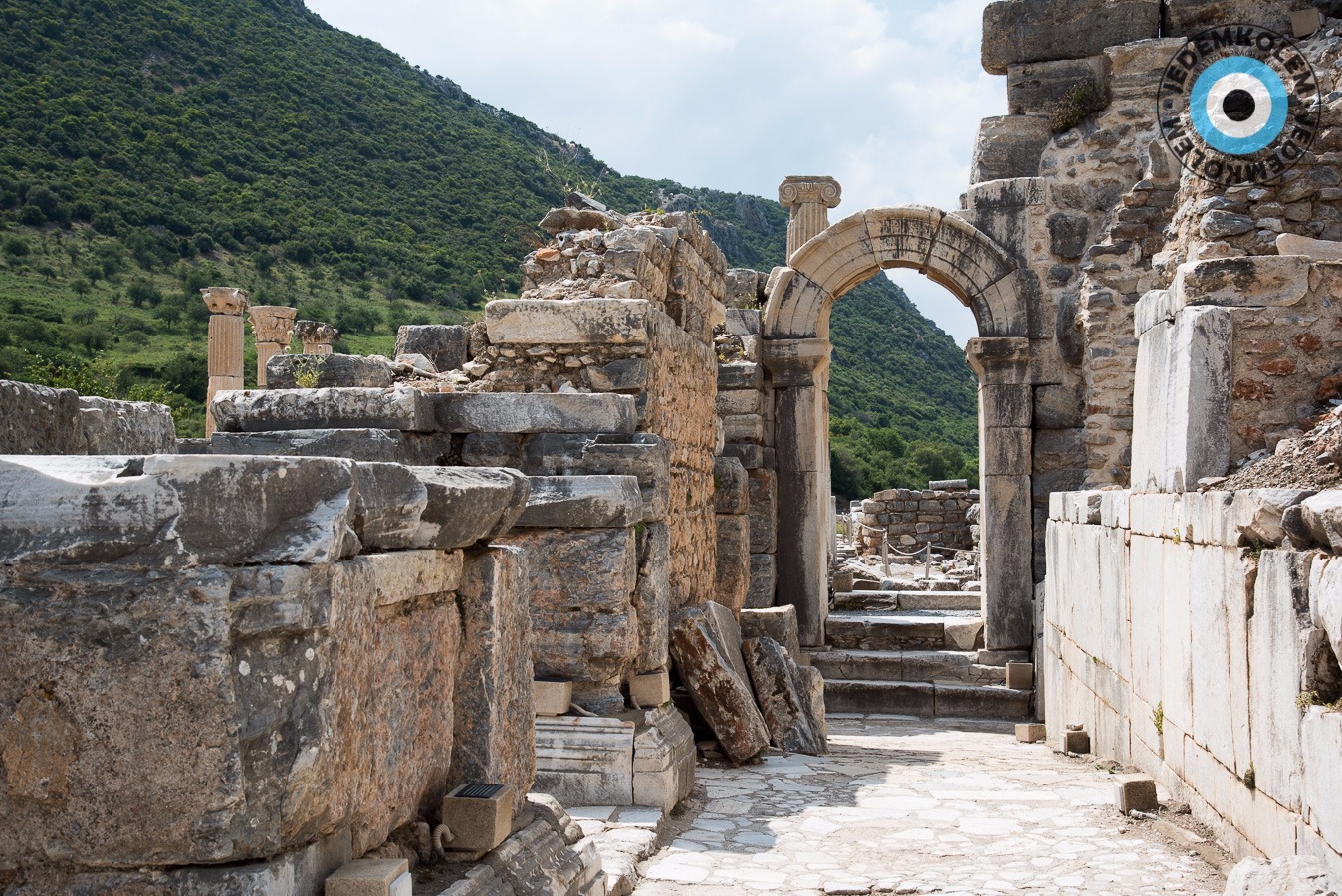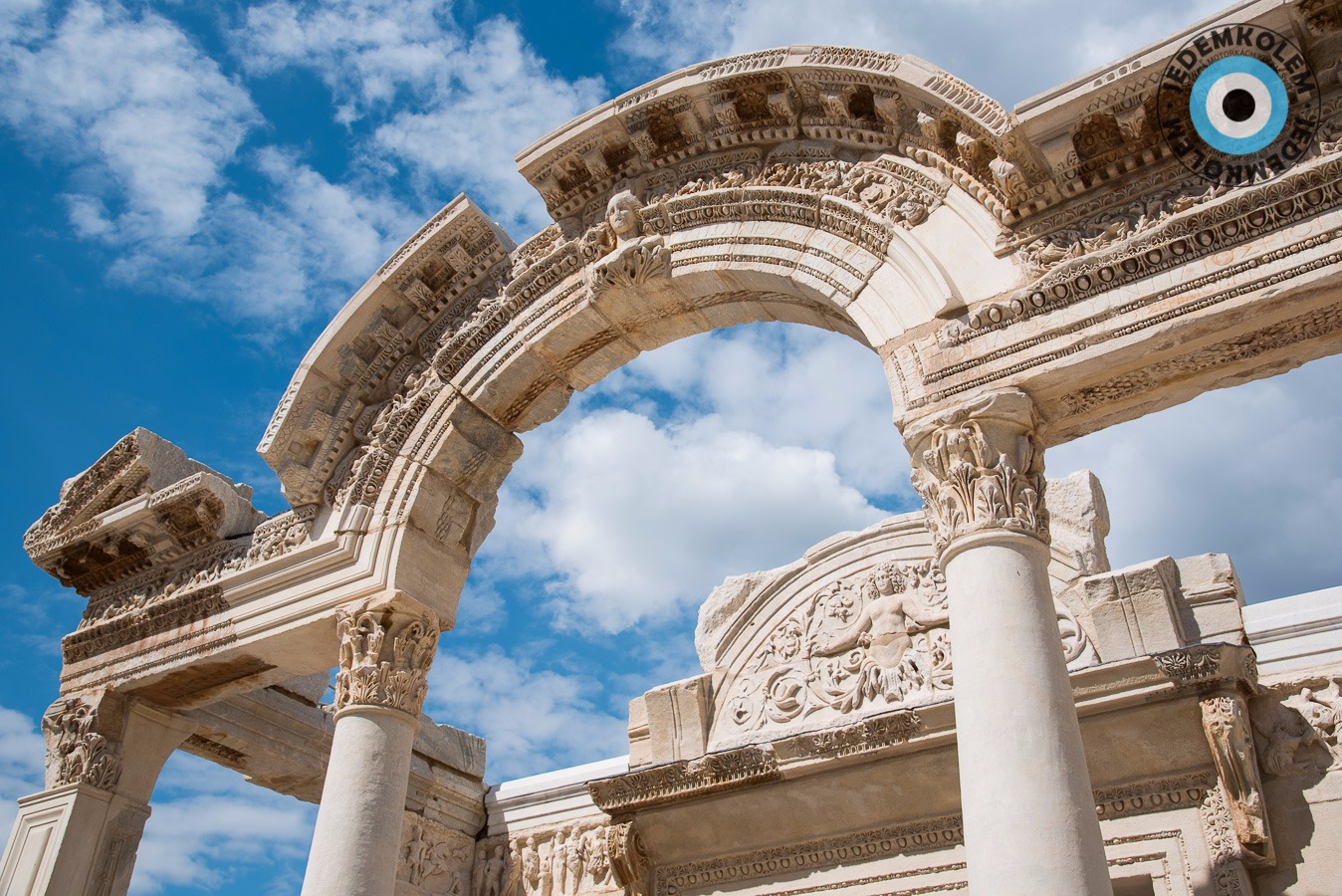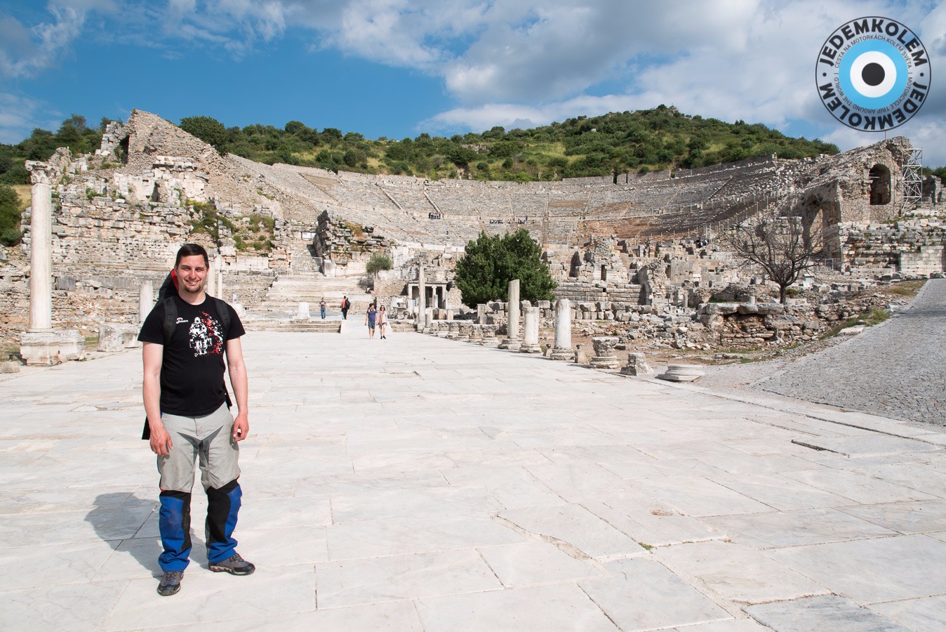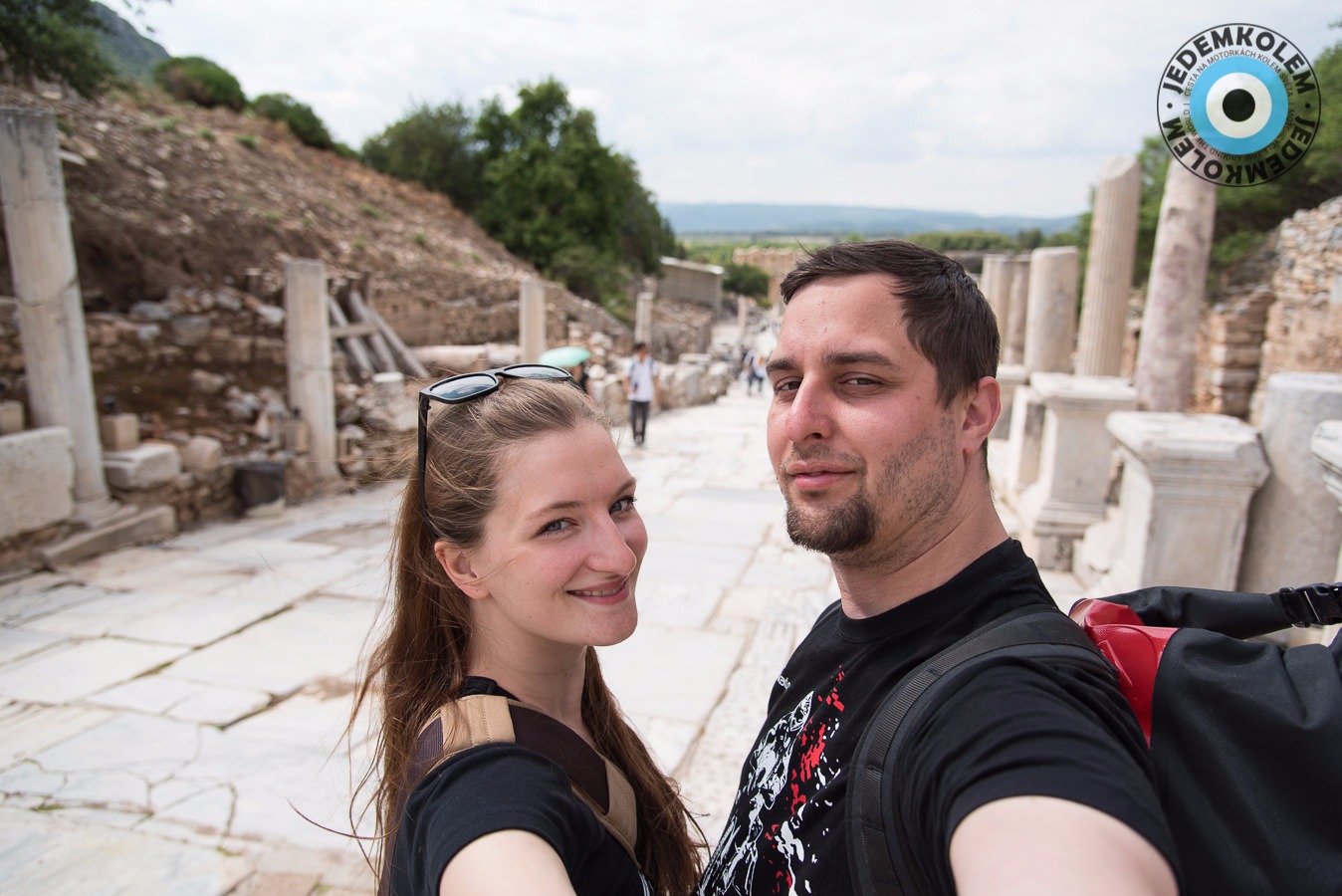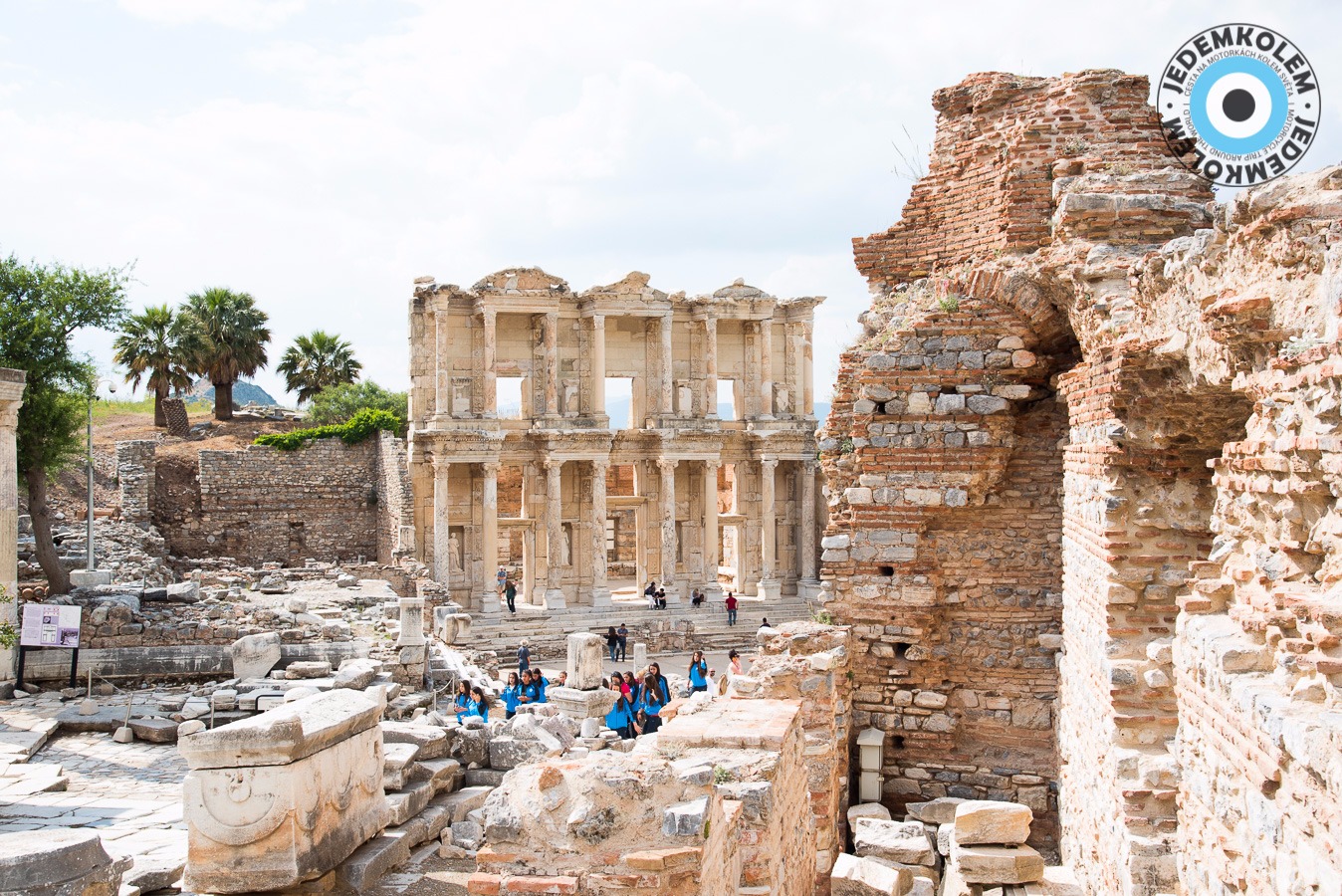 Další zastávkou je Efes, který je nyní už památkou UNESCO. Na parkovišti se k nám žene týpek a říká co a jak. Prý je lepší jít to procházkou ze shora. Pracuje prý pro vládu. Na visačce má „shuttle supervisor“ haha. Zadarmo nás prý odveze k hornímu vstupu a cestou nám ještě zastaví na exkurzi do továrny na kožené kabáty a kabelky. Asi už tušíte, co následovalo…továrna byl obchod a když jsme nic nekoupili, tak nás vykopli. Naštěstí nám ale zavolali odvoz ke vstupu. Nechali jsme se napálit, ale jsme u vstupu a zadarmo tak co. Vstupné je 40TL, fůůů to je dost oproti 25ti co psali na netu. Platíme a necháváme na sebe dýchnout historii. Návštěva za to stojí a celkem tu trávíme asi 4 hodiny. Po návratu na parkoviště je supervisor už pryč, to se dalo čekat. Ještě, že jsme si k němu do auta nedali věci, jak nám radil. Dobrák od kosti. Raději pryč, ale kam tak pozdě.
