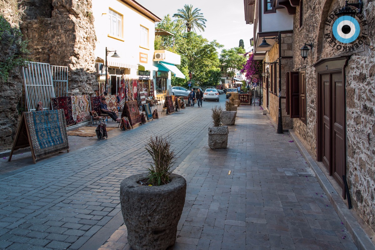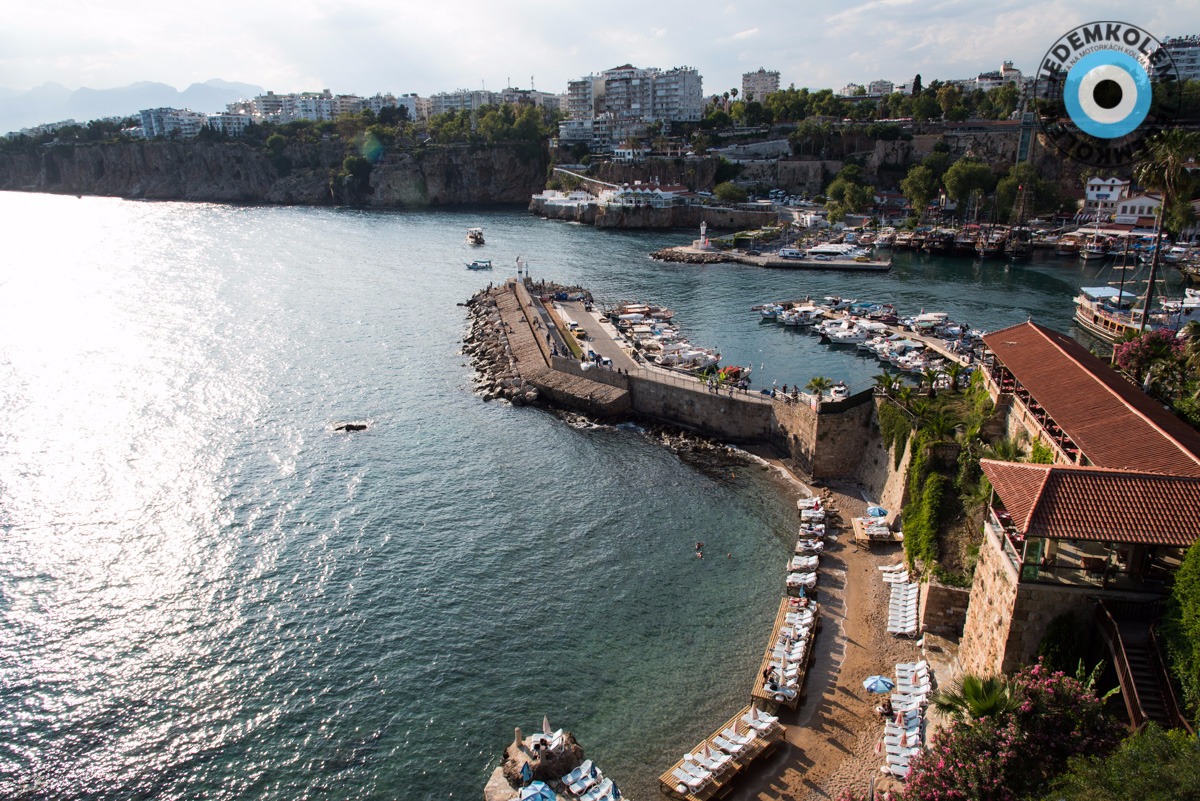 Nevím, jak to Mirka dělá, ale vždy odněkud vytáhne sušenky. Takže starosti, co budeme snídat, padají stejně rychle jako sušenky do nás. Jsme pár kilometrů od Antalye, kam by měli dorazit naše pasy z Prahy. Velké díky patří Mirkovi Marešovi, který nám předal kontakt na svého kamaráda Metina, právě z Antalye. Na benzince mu píšeme, že za chvíli dorazíme a taky se snažíme zajistit si nějaké to ubytování přes couchsurfing. První člověk nás odmítá s tím, že když máme na benzín, máme přece i na hotel. Tohle moc nechápu, benzín sem nás stál stejně jak letenka. Díky tomu ale natrefíme na perfektního člověka. Burak byl na Erasmu v Brně a studoval to stejné co Vojta. Jak viděl, že jsme z ČR, neváhal a pozval nás k sobě. Máme vlastní pokojík a motorky jsou v hlídaném areálu. Co víc si přát. Nakonec se z toho vyvine moc krásný pobyt. Původně jsme tu měli být jen dva dny, ale každodenní ujišťování, že balíček dorazí, náš pobyt protáhl na dnů šest. Antalye je celkem jiná než zbytek Turecka. Je to přímořské město plné hotelů, má krásné staré město s miniaturními uličkami a hlavně, hlavně jsou tu k vidění velké motorky a ne jen skútry jako ve zbytku Turecka. Zkrátka je to tu dost jiné. Péče o turisty a jejich bezpečí je zde na prvním místě. Nejsou výjimkou ani detektory kovu v obchodech. Po šest dnů jezdíme po městě, upravujeme fotky a stříháme video. Celkově prostě lenošíme a dáváme se dohromady. Jeden večer nás Burak zve na couchsurfing setkání. Zde potkáváme prvního a zatím posledního Čecha na cestě – Josefa. Studoval v Turecku a dává nám nějaké tipy. A co je hodně důležité, kontakt na kamaráda ve městě Van. V neděli už to nevydržíme a jedeme pryč. Lenošení už bylo dost a díky vízům se musíme trochu pohnout dál. Domlouváme se s Metinem, aby nám balíček přeposlal do města Van na východě Turecka. Kdybychom věděli o těchto průtazích už předtím, jeli bychom dávno.