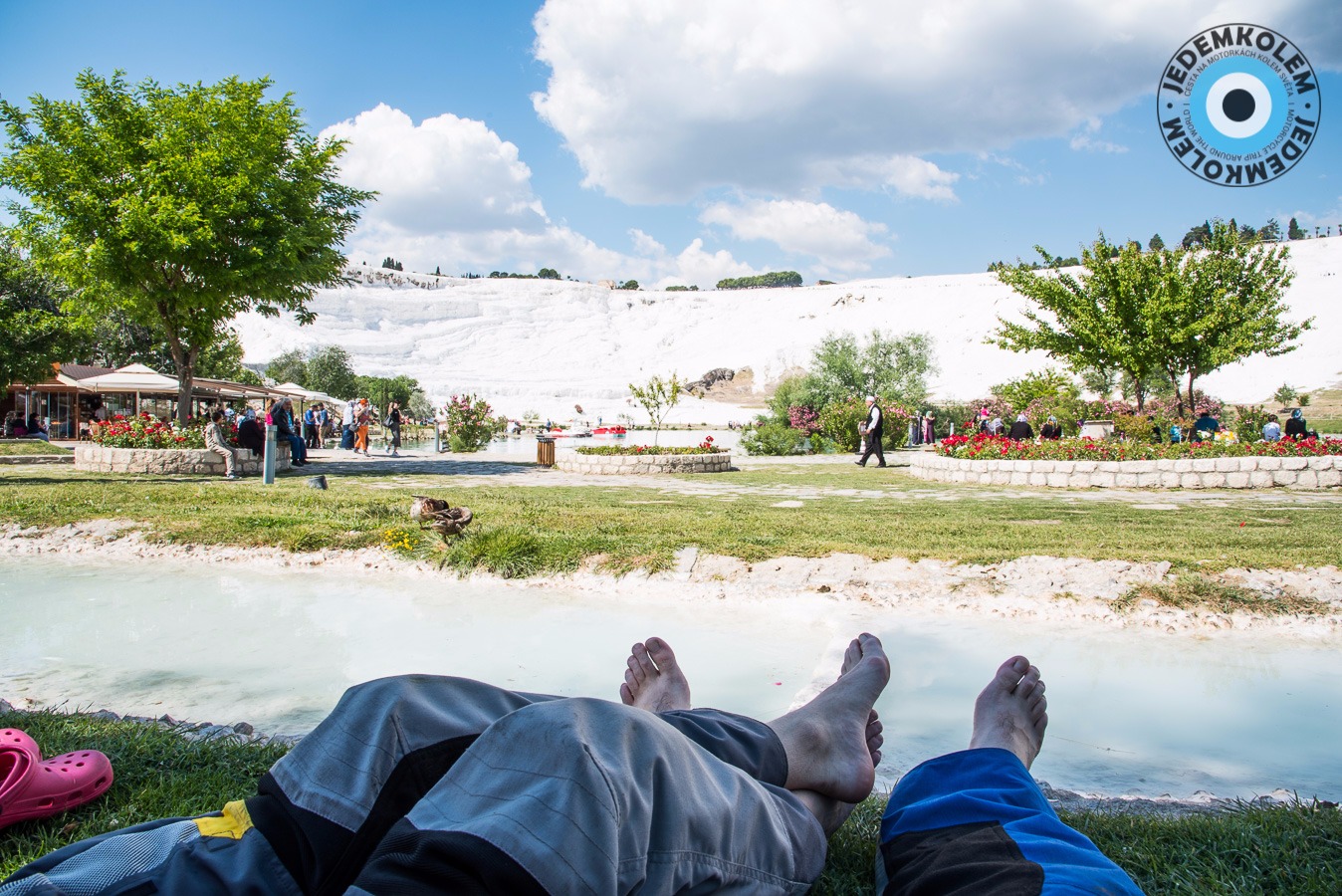 Do Pamukkale nechceme dojet v pravé poledne a tak se trochu flákáme. Nakonec stejně ztvrdneme v zácpě. Je to tu jak v Rumunsku, všechny vesnice jsou kolem hlavní cesty, takže nejde jet moc rychle. Na Pamukkale je hodně vedro a tak sedáme do parku do stínu. Pohled na asi půlkilometrovou kolonu lidí stoupající vzhůru nás odrazuje. Tohle si necháme na někdy příště. Dnes nás také napadá se zaregistrovat na couchsurfing. Vojta už před pár lety této komunity několikrát využil, tak proč ne teď znovu? Při pohledu na zácpy, jsme se rozhodli to vzít trochu mimo hlavní tahy a do hor. Jezero by mohla být příjemná destinace k dnešnímu kempování. Je tu sice značen kemp, ale není po něm ani vidu ani slechu, zaplouváme tedy do březového háje na břehu jezera. Noc je chladná, ale asi už jsme zvyklí. Navzdory tomu, že se jezero jmenuje Salda, voda slaná není. V celém Turecku jsme nenašli kouzelnějšího místa. Možná to bylo západem slunce, možná jsme konečně našli překrásné místo na spaní a možná je to tím, že je to tady opravdu dokonalé.