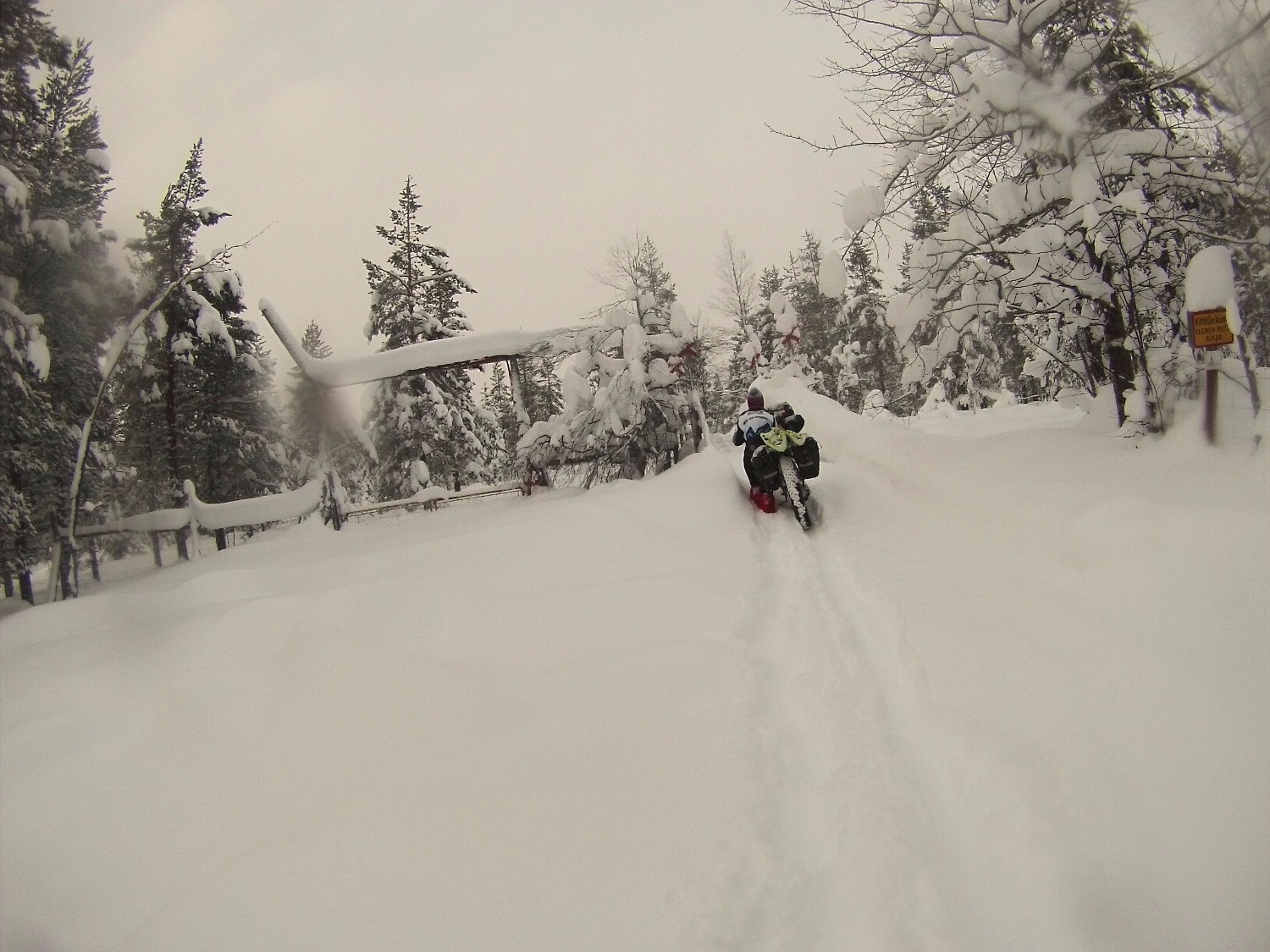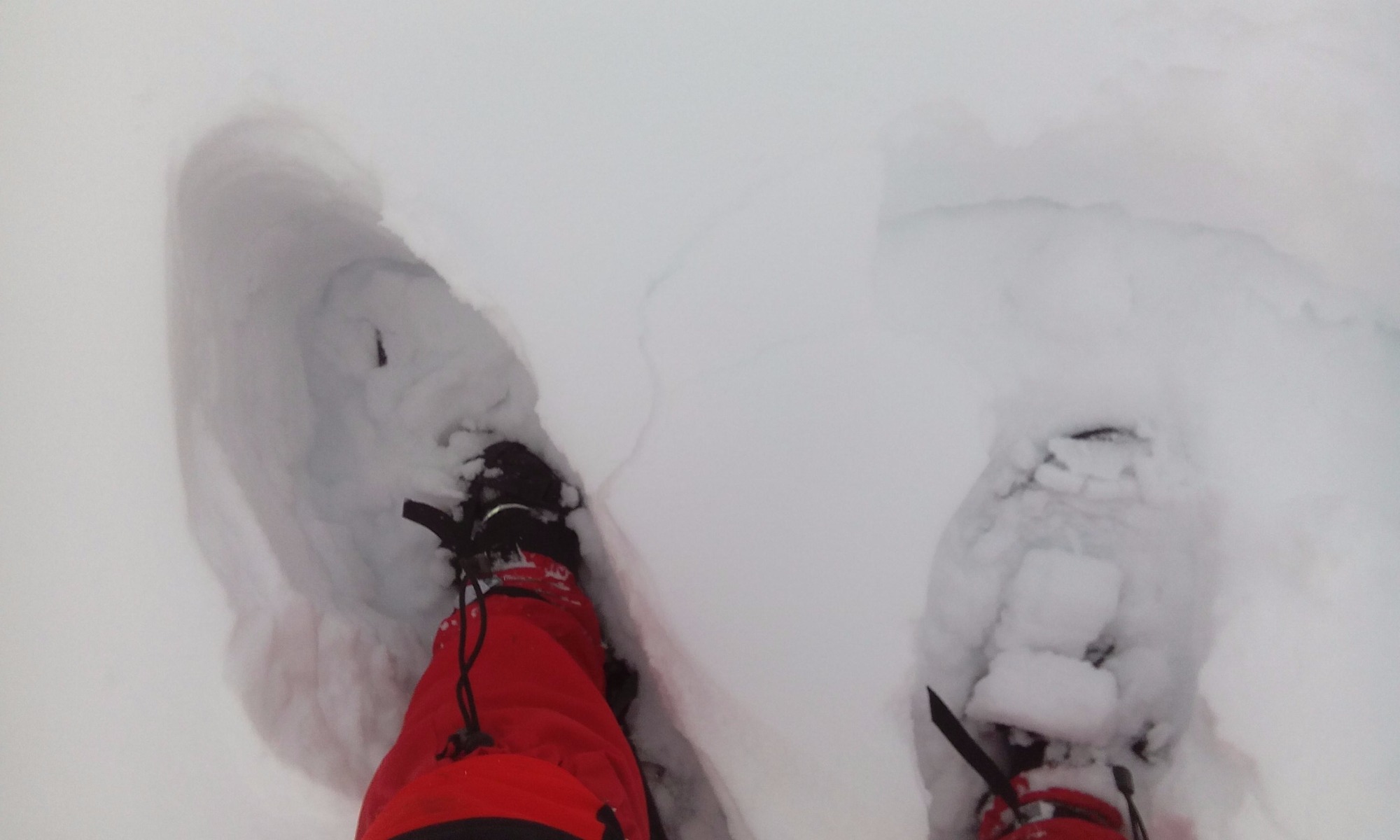 Minulý rok se Peggy s Adamem výzvy zúčastnili na sněžných kolech. Plánovali dojít k odlehlým bodům jen ve sněžnicích, bez kol. Bylo jim jasné, že kola těmito oblastmi nepůjdou protlačit. Kola párkrát opustili a šlo to. Jenomže pak začalo hustě sněžit. Během jednoho týdne nasněžilo 80 cm sněhu. Uzamkla se cesta dlouhá 130 km a společně s ní i další postup. Tato cesta byla na mapách vyznačena jako skútrová highway, jenže ve skutečnosti nebyla.