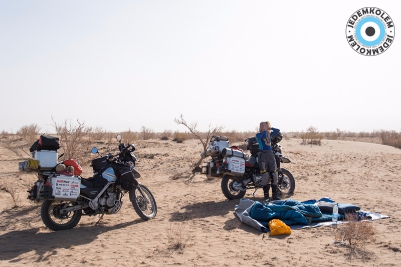 Je čas vyrazit do Teheránu. Cesta je to dlouhá, tak vás asi nebudu zatěžovat tím, jak jsme se po ní potili, ale vypíchnu jen ty zajímavosti. Možná už jsme o tom psali dříve, v Íránu jsou na všech výrobcích napsané ceny. Vše tudíž stojí všude stejně. Pro turisty je to super, protože i tady se najdou tací, co chtějí vydělat. Ale my jsme připraveni a známe číslovky ve farsí. Prodavači se netváří moc vlídně, když odmítáme zaplatit požadovanou, někdy až trojnásobně vyšší cenu. Naštěstí je tu obchůdků vždy více. Když zastavujeme, dostáváme od lidí ovoce a od jednoho zelináře dokonce 4 melouny. Díky chlape, ale kam to máme dát?? :-) Za městem Kašan mizíme do pouště s úmyslem spát u slaného jezera. Padá ale tma a písek je zrádný. Hlásím to Mirce do komunikátoru, ale už je pozdě. Naštěstí se jí nic nestalo a motorka získává další šrámy, o kterých se bude dát později vyprávět.