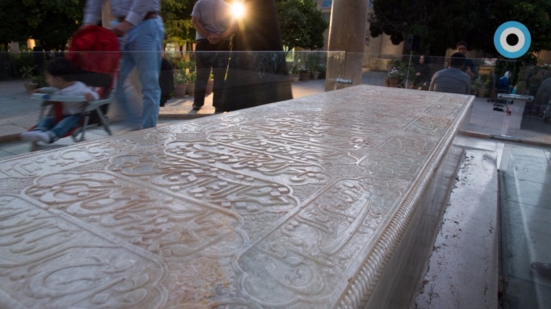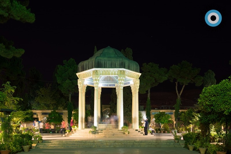 Z ničeho nic, na nás začne někdo mluvit, zprvu tomu nevěnujeme moc pozornosti, protože na nás pořád někdo mluví, ale on je to Amid, kamarád Yousefa z Persepole. Koukáme jak puci, že nás tu našel, ale jsme tu asi jediní cizinci, tak to měl jednoduché. Má tu auto a provede nás zbytkem města. Jako první cíl volí hrobku jednoho ze dvou básníků, co jsou ve městě pochováni, Hafeze. Hrobka je uprostřed zahrady a lidé se tu uličkami prochází.
