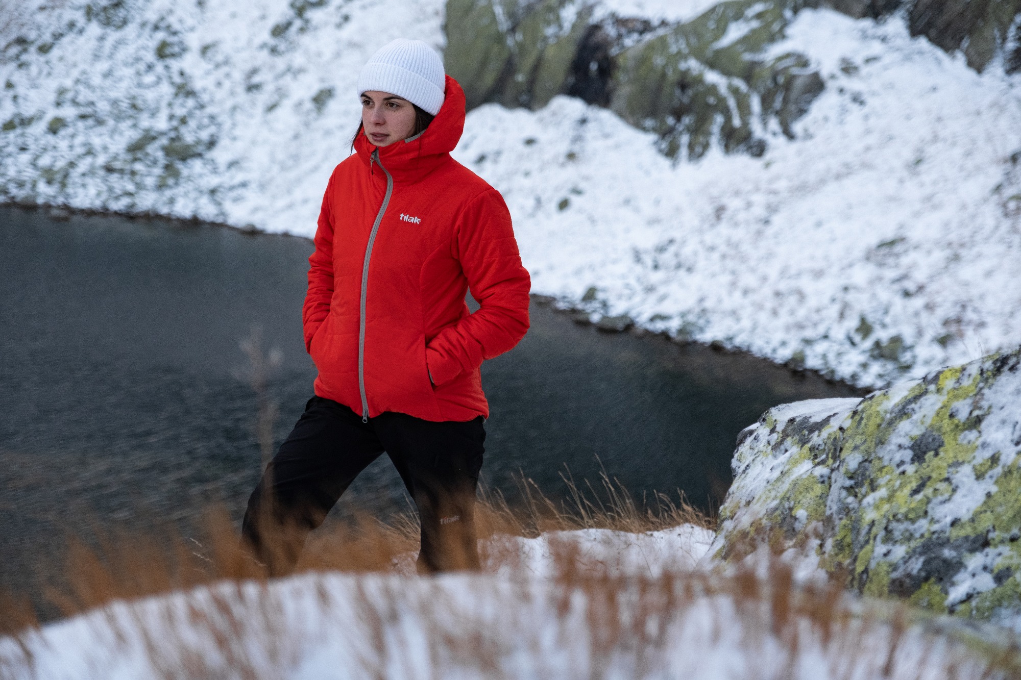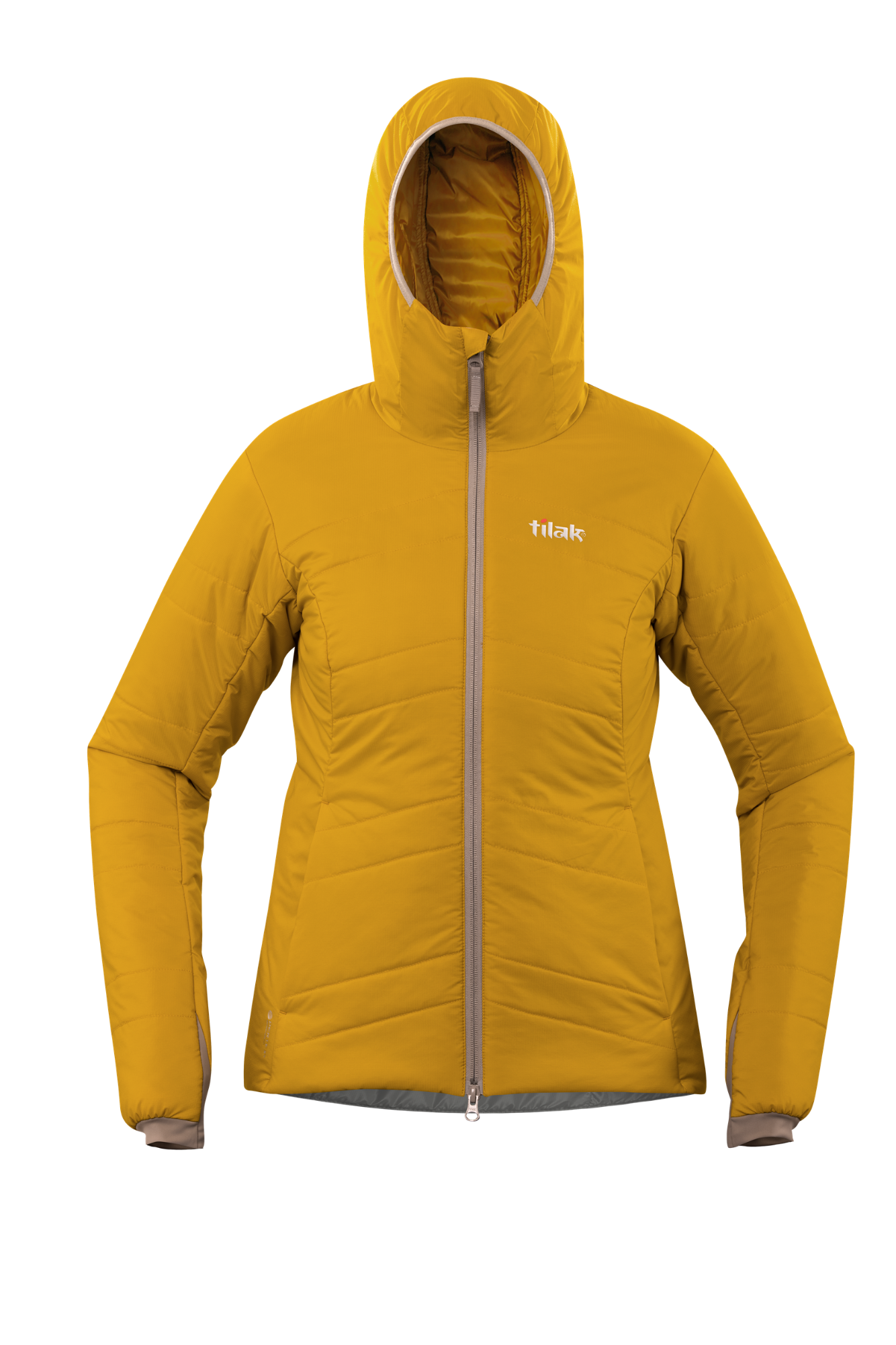 Inovovaný model dámské celorozepínací bunda s kapucí z ultralehkého materiálu zateplený syntetickým rounem Climashield® Apex.