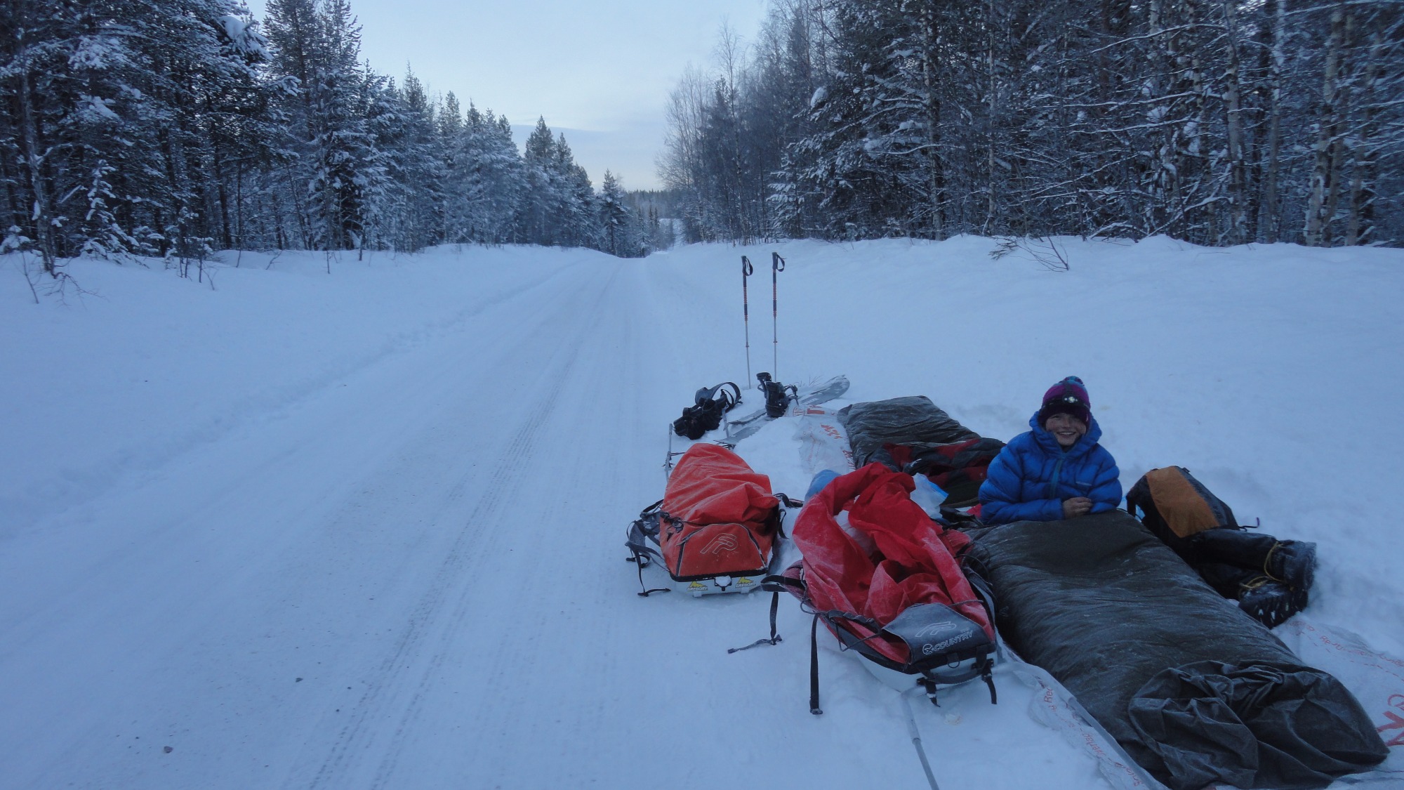 Přes 200 km šli úplně volným terénem a přibližně dalších 200 bylo také hodně náročných, sice po cestách, ale nepoužívaných, zapadaných. První týdny teploty klesaly až k -35 °C, paradoxně horší ale bylo pozdější oteplování. “Párkrát jsme zmokli, což v zimě není vůbec příjemné, naopak to může být se špatně zvoleným vybavením i velmi nebezpečné,” vysvětluje Peggy. Plusové teploty způsobily komplikace při přechodu řek a potoků.